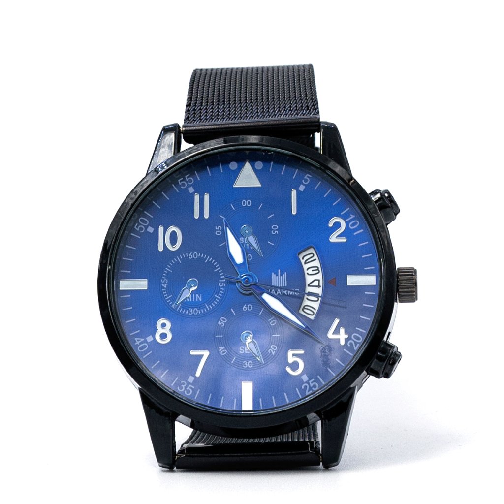 Refined, sleek, and undeniably sophisticated this Premium Men’s Watch with Black Mesh Strap delivers understated modern luxury. It pairs a crisp black dial with a polished stainless steel mesh band, offering both stylish restraint and functional comfort. Tailored for the modern gentleman, its minimalist aesthetic and quality craftsmanship make it perfect for boardroom elegance, evening events, or elevated everyday wear.
