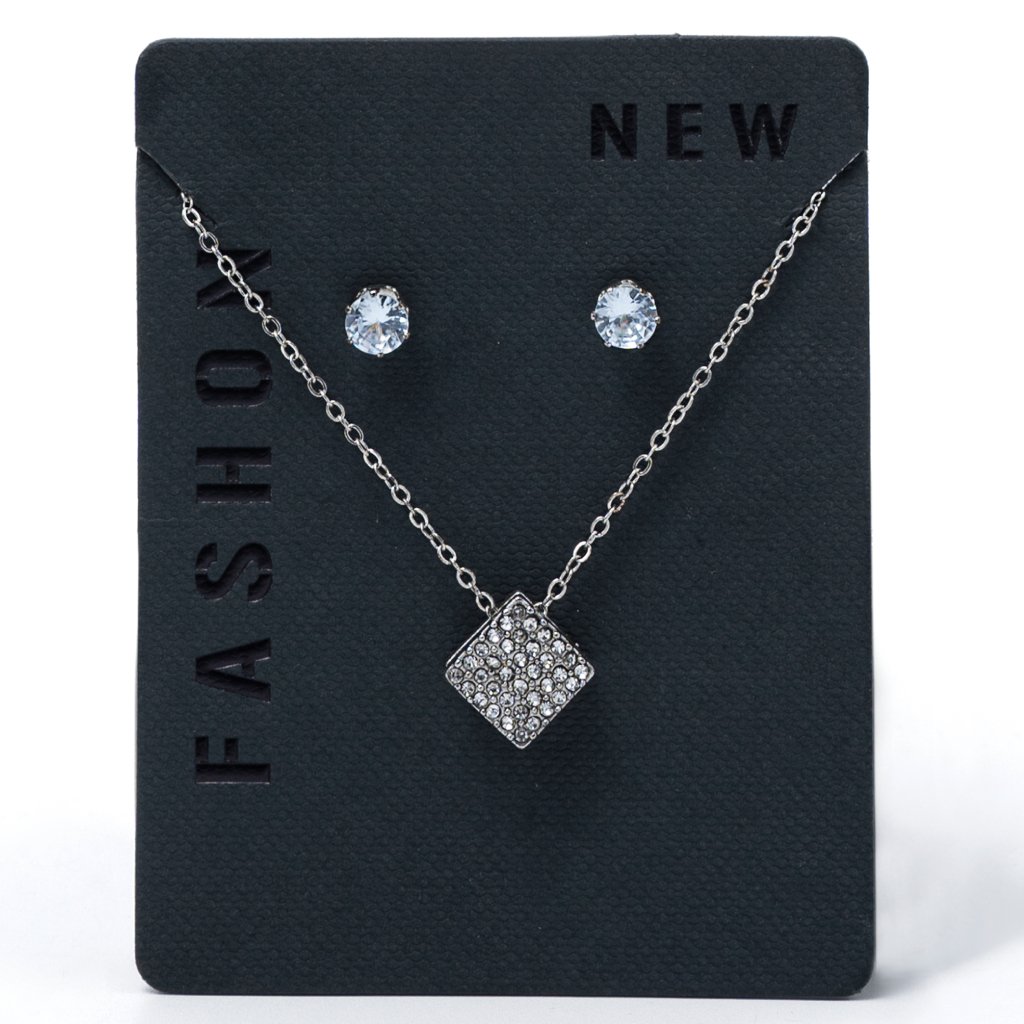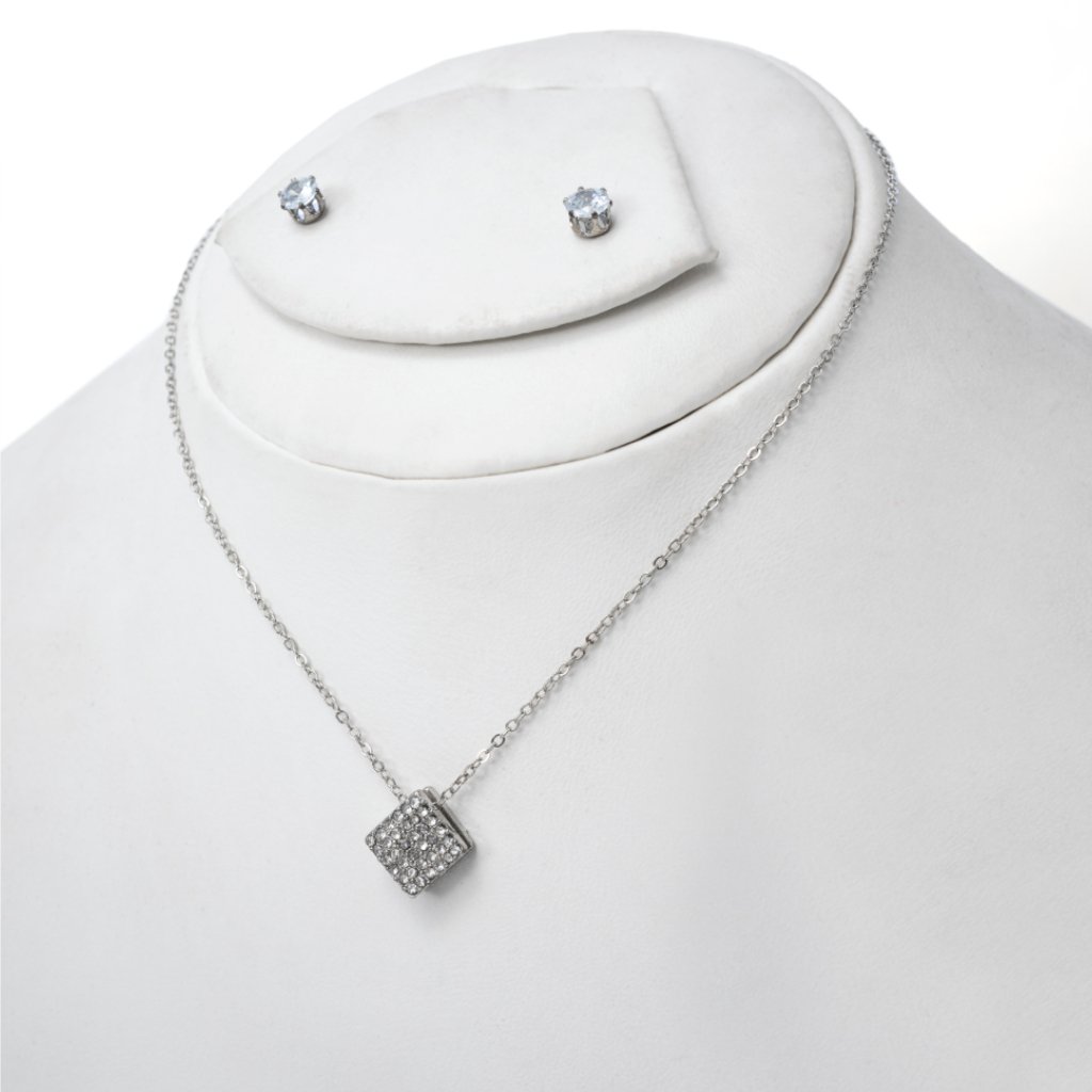 Stylish square pendant necklace with matching ear tops