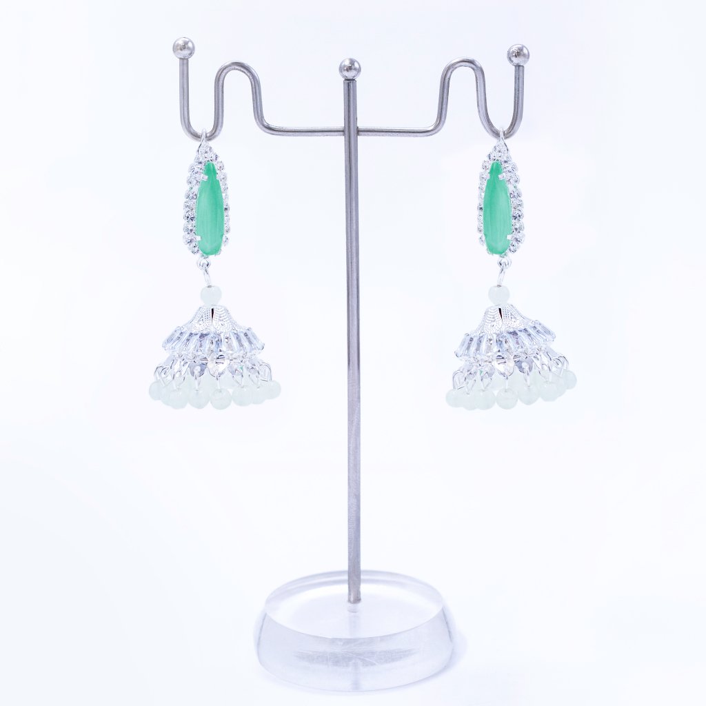 Sparkling Crystal Pearl Zircon Earring For Fashion Wedding Jewellery Silver Green